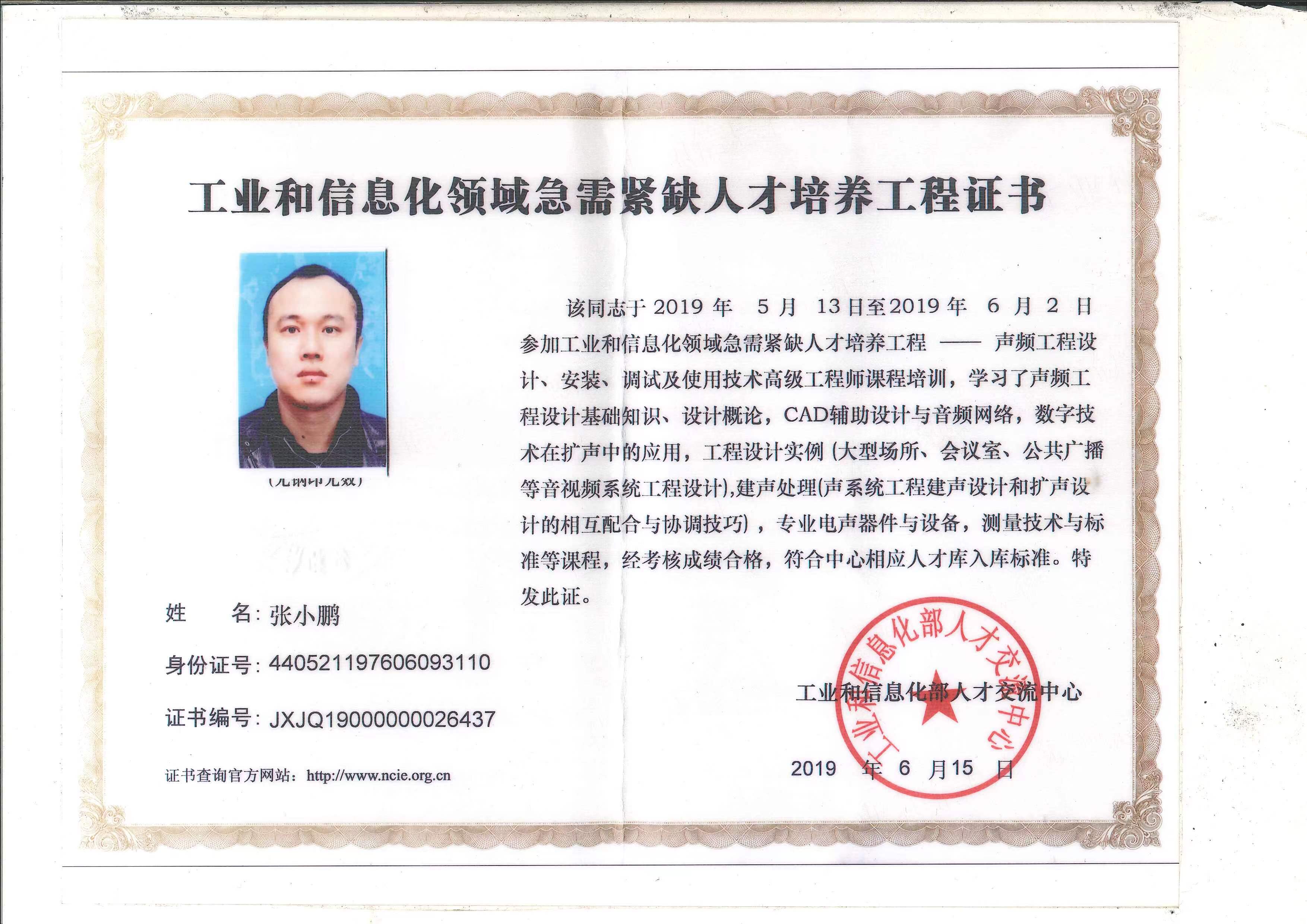 國家工信部認證:信息化應用工程師 音視頻安裝工程師